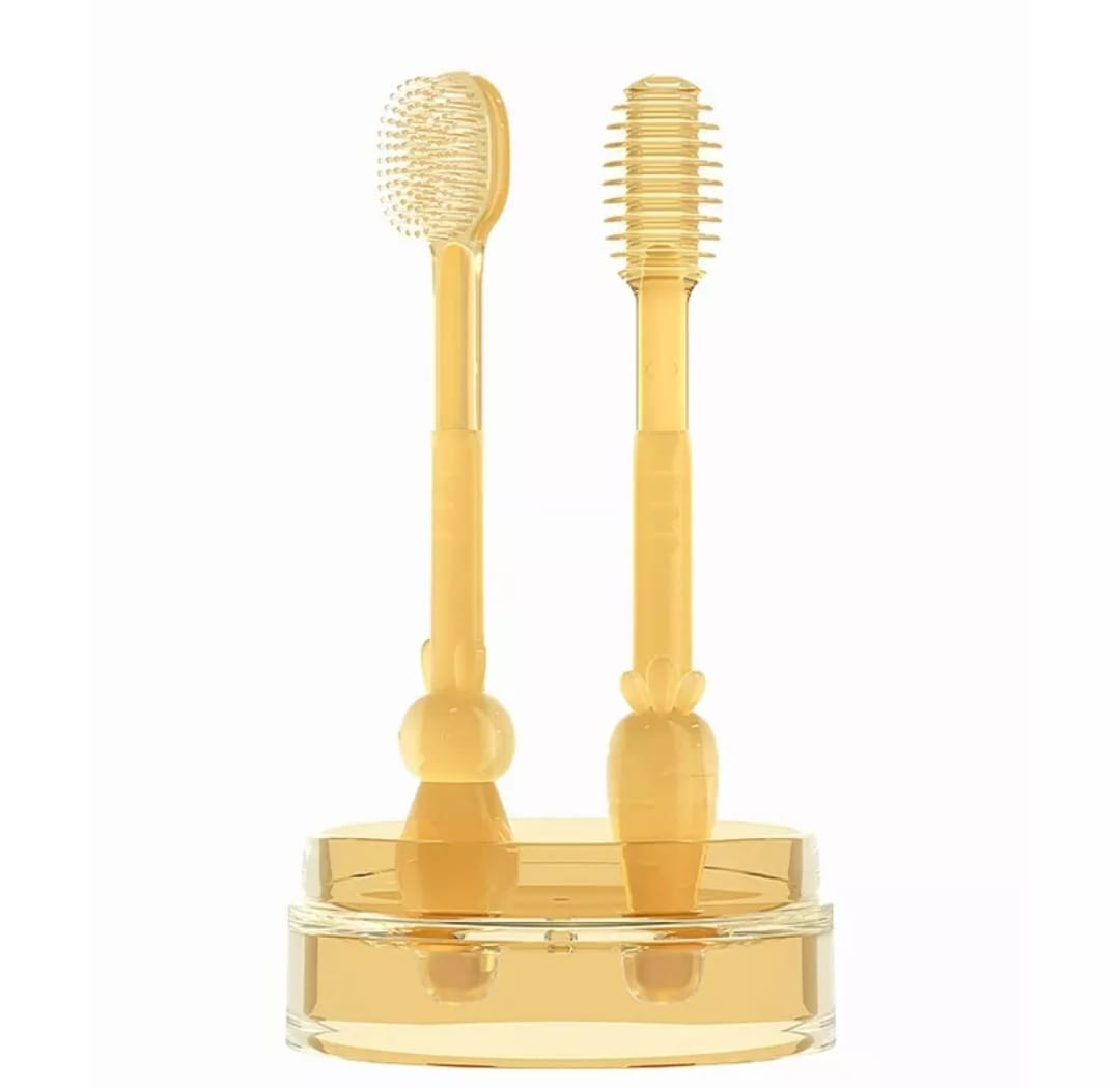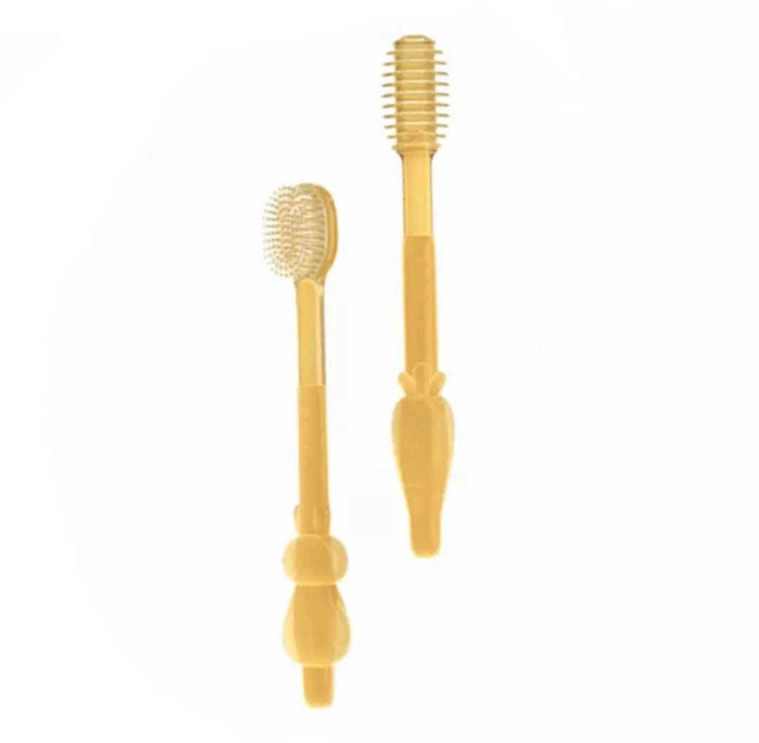 Escova de dentes amarela com capa: idade aplicável: 0-18 meses